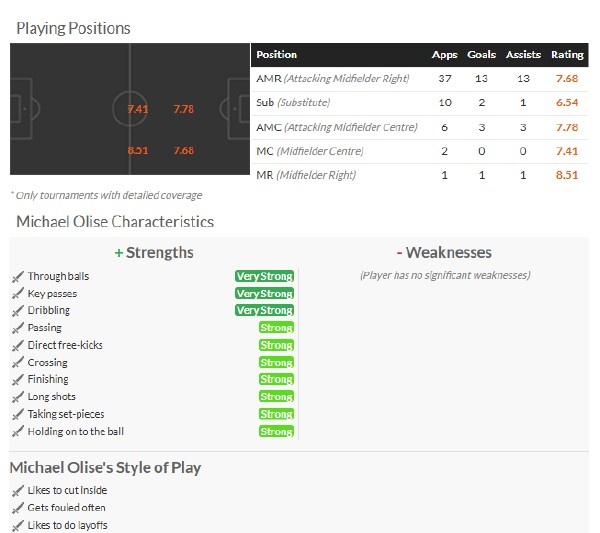 不过需要注意的,是法国国脚奥利塞。这名年轻人来到拜仁的第一个赛季,就给出了一份17球21次助攻的漂亮成绩单。